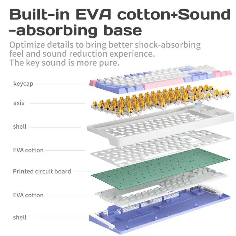 The Creamy Keyboard is built to last, with a robust aluminum frame that provides stability and durability. The keycaps are made from high-quality ABS plastic, resistant to wear and fading, ensuring the keyboard looks and performs like new for years to come. The spill-resistant design adds an extra layer of protection, making it a reliable choice for busy workspaces or gaming dens.