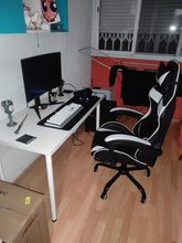 I like the chair, it is quite comfortable, something that I thought was through the levers was the footrest but this you must remove yourself by moving it from below. I've been with it for a few days now and I'm really glad I bought it. for my desk it is not possible to put it down due to the armrest, but I still do not regret having acquired it :).