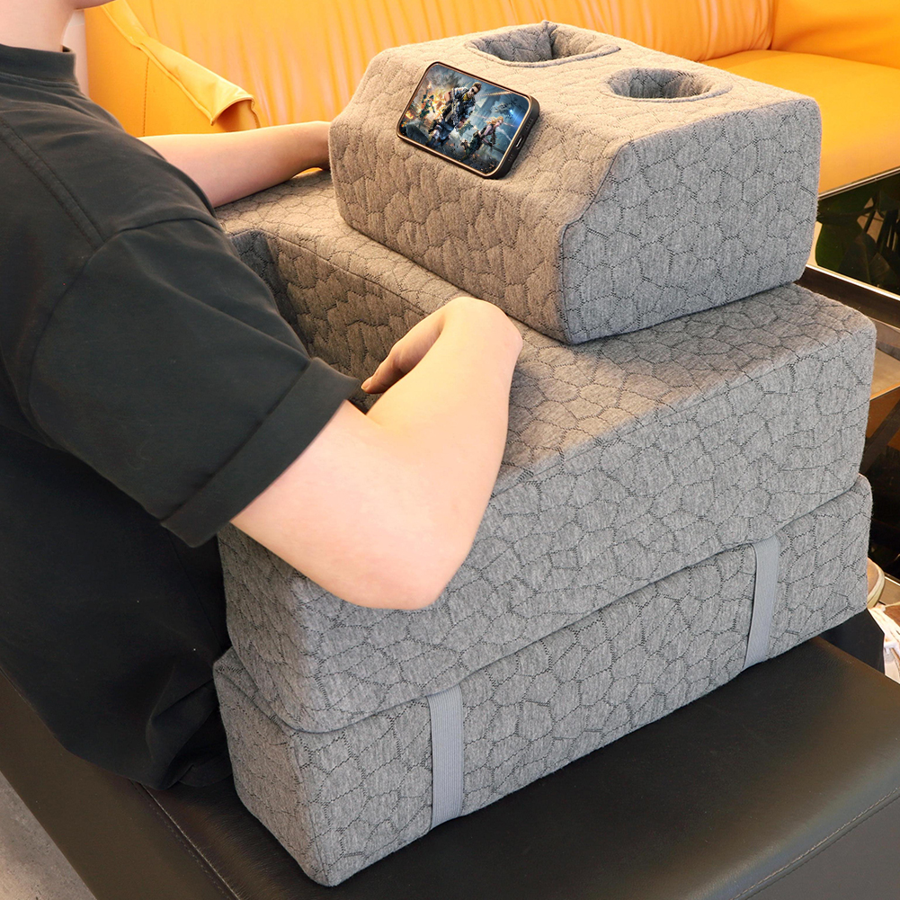 4. Convenient Storage: The Arm Rest Pillow includes a dedicated shelf platform for storing remote controls, phones, cups, and drinks, ensuring everything is within reach. The storage strap design saves space and keeps things tidy when not in use.