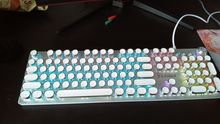 Fast delivery, less than 2 weeks to Nizhny Novgorod, packed was bad, the whole box was crumpled, thought that and the keyboard will be damaged. But no, two Cape went off, but everything works. When pressed tactile pleasant sensations, the Assembly looks quality, additional keys with sound adjustment and pause/playback work. The keyboard was less than expected that for me a plus. I thought that the backlight of the RGB, but the color on the keys is static, as in the picture. + added stickers with Russian letters. The keyboard is happy, let's see how it will show at the distance. Thank you!