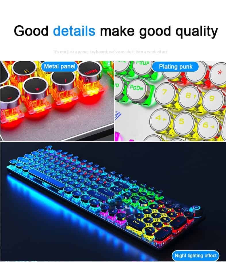 Feeling uncomfortable when using conventional keyboards? The keys do not fit together when pressed at the same time? Their colors are too casual? This Steampunk mechanical keyboard is made perfectly for you. This is an “N-key rollover” keyboard, where “N” is the number of keys, which are essentially keyboards capable of typing multiple keys at once. This is extremely convenient when you want to press multiple keys at the same time without the phenomenon of short-circuiting. The top cover of the keyboard is made of metal, which is more durable. Outstanding colors with flexible mode switching between the normal version and the multi-function version. With intelligent sleep mode, when the host enters sleep or standby state the backlight function is turned off and restored after the host starts up. Designed with a mechanical green shaft switch, about 60 million key life. Working or gaming, it can satisfy both. The choice is yours, get now!