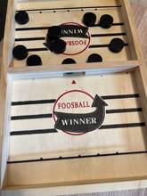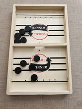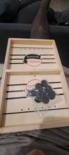 Table Hockey Game – A reversible wooden board games: a fast track dexterity game on one side and a strategy game on the other side. Lightweight and compact enough to carry. Ready to play either on the table or on the floor.